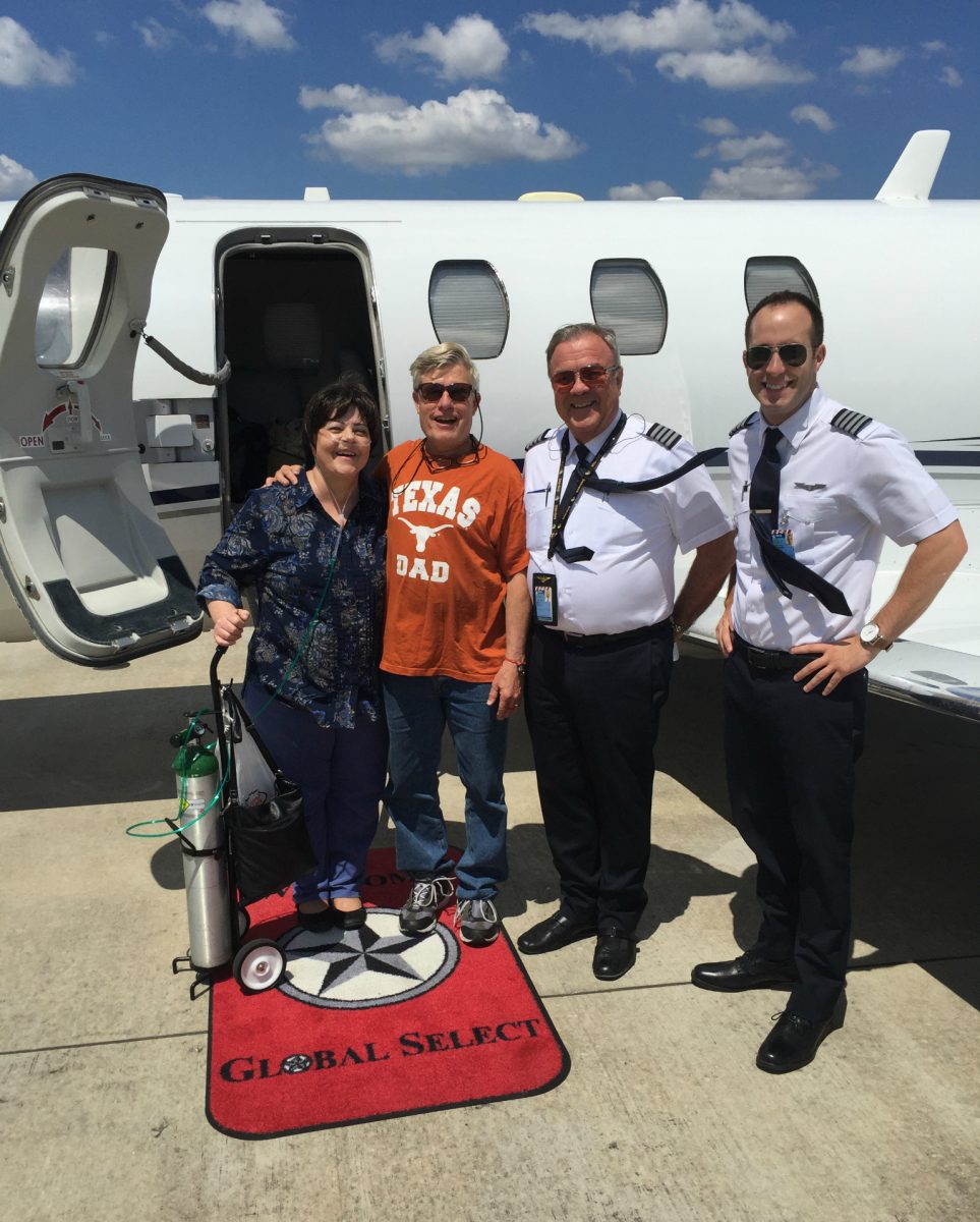 I scoured the internet for other possibilities, because I wanted to go so much. I discovered I could charter an air ambulance equipped with big tanks of oxygen to fly to Houston. A wonderful solution … but very expensive. It cost $39,000 for this round-trip flight, including the plane, gas, oxygen, pilots and a medical person on board to monitor my oxygen levels, plus their expenses in Houston.